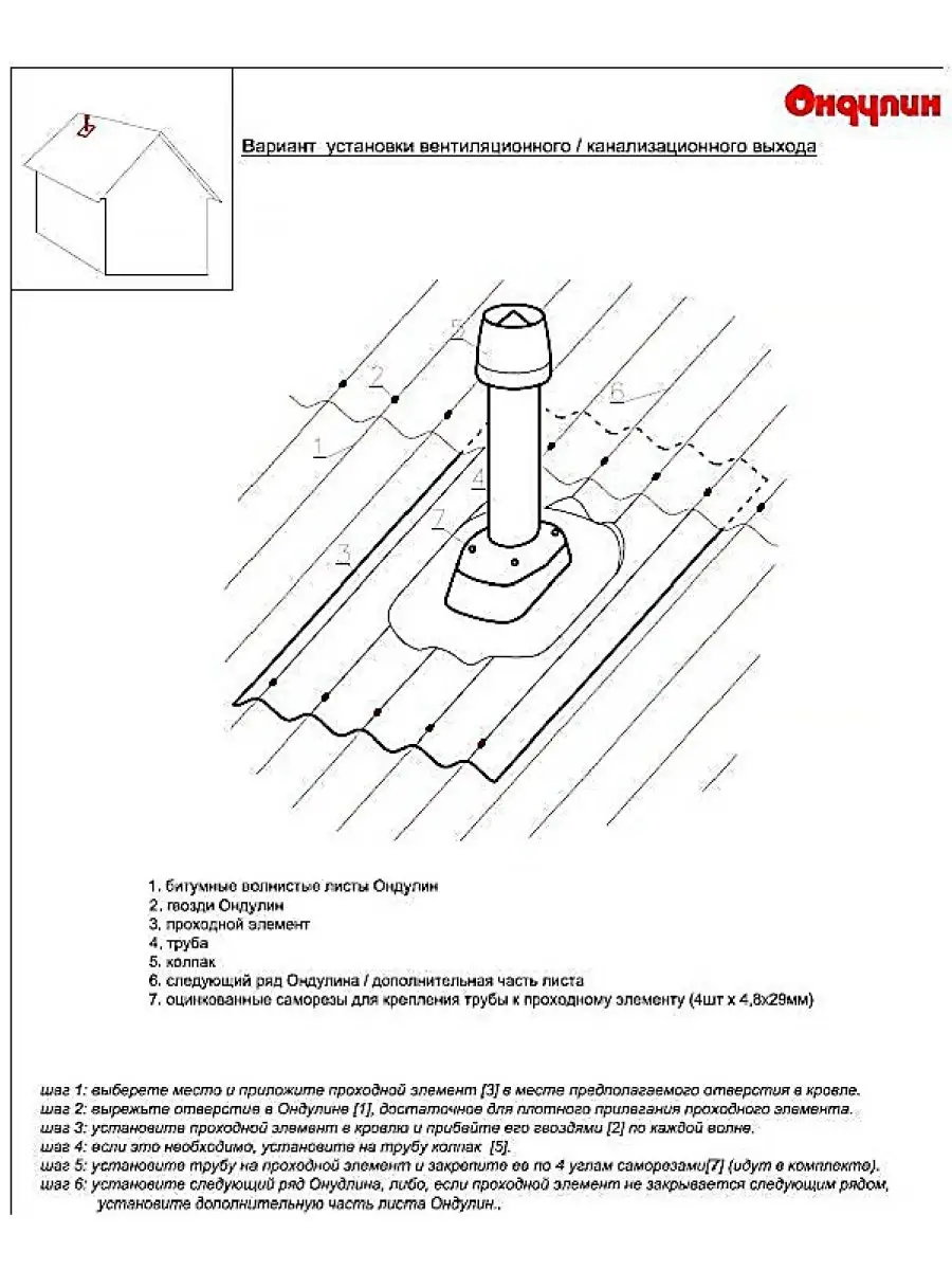 • основание вентиляционной трубы крепить по каждой волне гвоздями Ондулин;